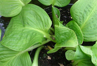 unusual hosta, leaves emerge in a rotation from centre rather like a cabbage,