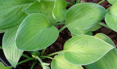 | Thin creamy white edge on blue-green leaf. A favourite of ours for the delicately thin margin and the beautiful matt blue-green leaves. | |||||