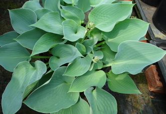 | Round frosty-blue leaves, some debate over what the flower colour actually is but it is registered as pale purple, so we'll go with that. | |||||