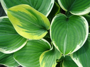 leaves are moderately wavy and broadly ovate with a wide yellow margin.
