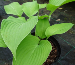 growing blue-green leaved cultivar that turns all green by mid-summer. Alternative: H. 'Aoki' |