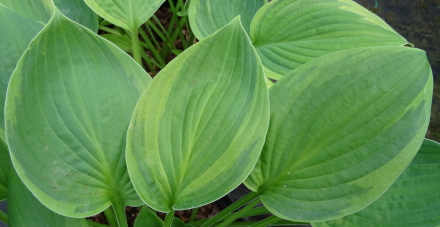 green leaves with chartreuse margins - lovely! Alternative: H. 'Camouflage' |