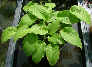 slightly ruffled heavy green leaves have whitish backs and are held upright