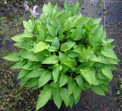 yellow leaves with wavy margins, turn green during season. Alternative: H. 'Lemon Lime' |