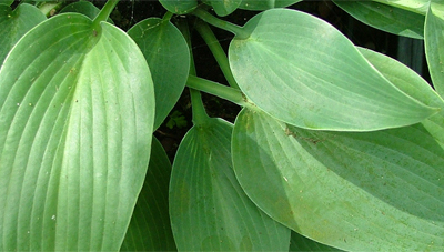 | Elegant blue-green leaves. Lovely white flowers make the leaves look bluer. This is a great grower, multiplying well to maturity. | |||||