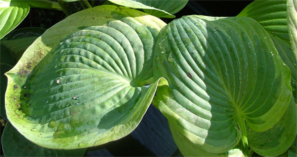 round puckered blue-green leaves with a wide creamy chartreuse margin. Stately plant